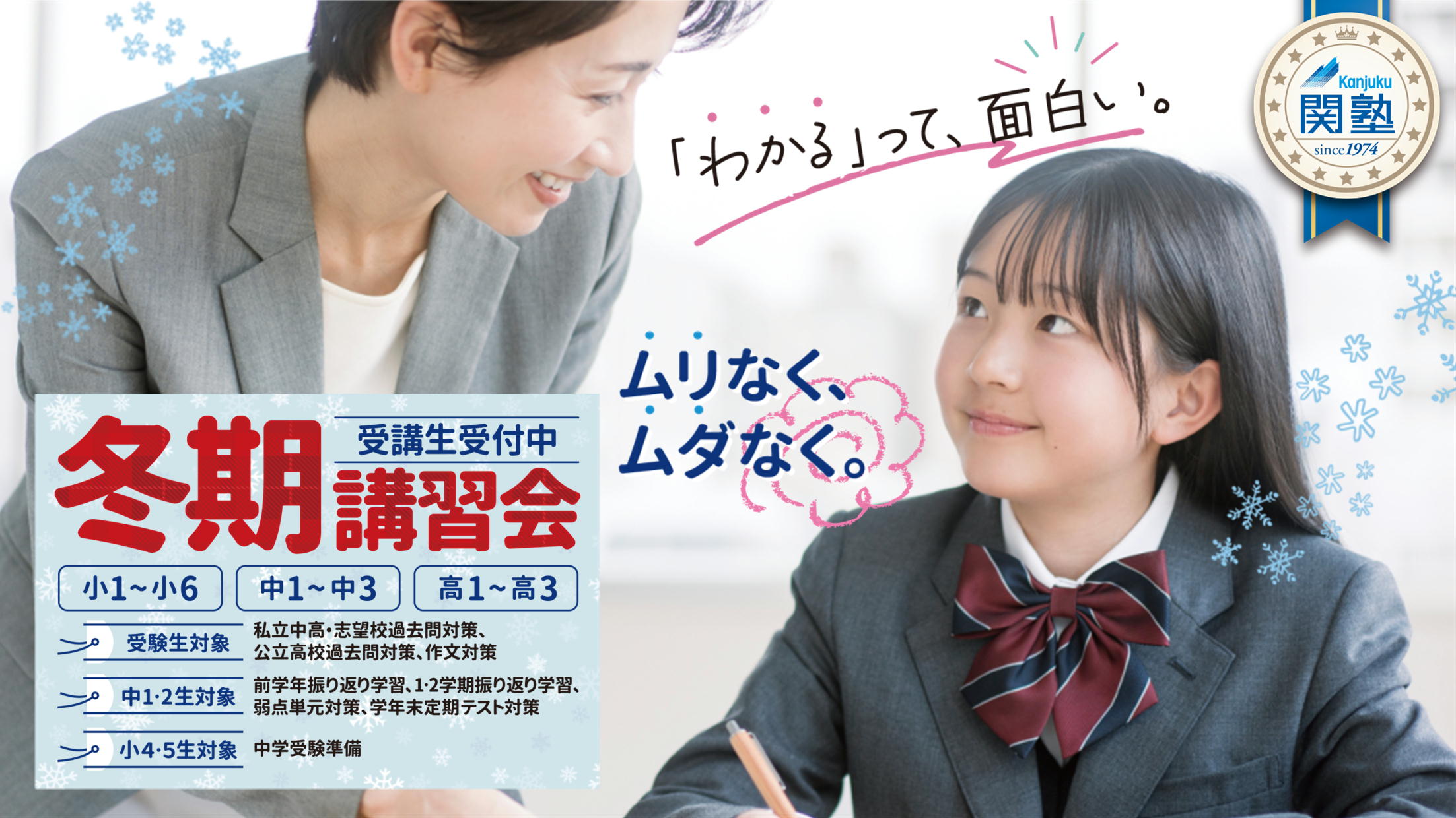 この冬関塾との出会い!冬期講習無料体験受付中!
